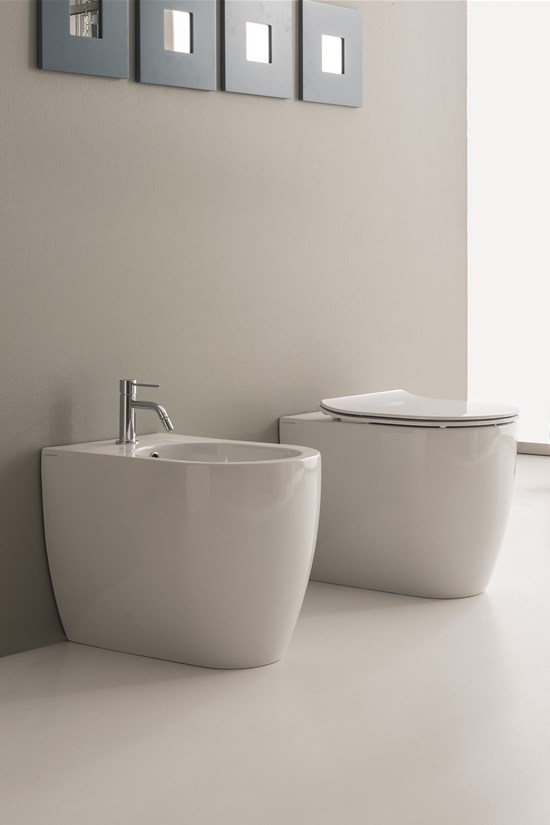 ovvero privi di quel bordo superiore interno del wc nel quale scorre l’acqua, sempre difficile da igienizzare e per il quale sono stati dispersi nell’ambiente tonnellate di prodotti inquinanti. Nei sanitari “senza brida” invece il flusso d’acqua è pilotato e permette di avere un risciacquo integrale che riesce a pulire con maggiore facilità tutte le pareti del vaso wc. Altrettanto importante è che la ceramica abbia subito quel particolare trattamento antibatterico in fase di smaltatura che offre il duplice vantaggio di impedire la proliferazione batterica, bloccandone il metabolismo, e aumentare le caratteristiche idrofiliche della superficie trattata esaltandone così la capacità di auto-detergersi. Anche in questo caso la tecnica e l’innovazione nella produzione dei sanitari ha permesso un notevole abbassamento dell’impatto ambientale riducendo drasticamente la necessità di utilizzare prodotti per la pulizia. - A terra o sospesi – la scelta non può essere solo estetica perché un sanitario moderno pesa circa 40 kg e per rimanere sospeso ha bisogno che nella muratura venga annegata una staffa capace di sorreggere quel peso più il peso dell’utilizzatore.